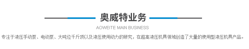 德州奧威特液壓機械有限公司有多年的超高壓元件及設備制造經驗,依托德州精湛的制造工藝和不斷創新的技術,專注于液壓手動泵、電動泵、大噸位千斤頂及拆裝科技以及液壓使用動力的研究,在超高液壓機具領域不斷研發,創造了大量的使用型液壓機具產品。